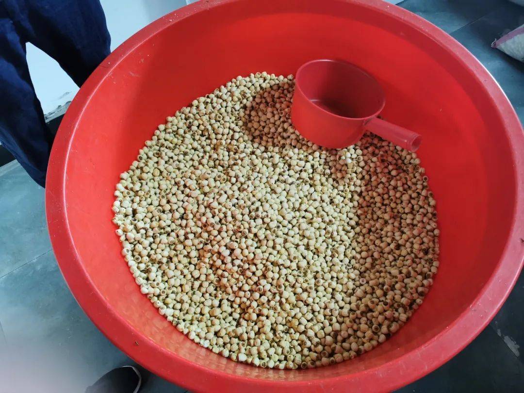 村民门口晒干的荷叶和加工好的莲子。作者供图