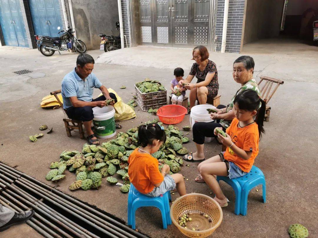 一家人齐上阵剥莲子。作者供图