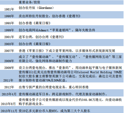 2012年起,壹传媒开始尝试剥离电视业务以及部分印刷媒体业务,加强对互联网以及移动互联网平台的投入,扩大围绕手机的内容销售,并将其与公司业务组合,其中进军手游就是最好的例子。