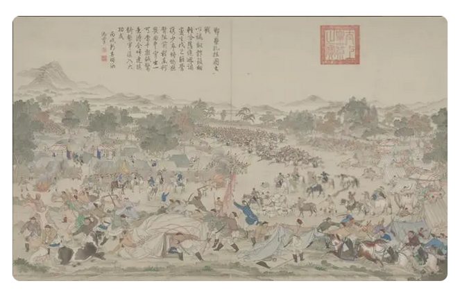 先说北疆,清乾隆年间兆惠平定准噶尔部后,以肉体毁灭的方式将不愿臣服的准噶尔部夷为平地,自此天山北麓地区虽然清廷仍称为“准部”,但实际上优势族群已经变成了同样放牧的哈萨克人。哈萨克汗国先前受准噶尔汗国的压制,准噶尔汗国灭亡后,哈萨克族群拥有了向东的发展空间。哈萨克汗国虽然向清廷称藩属,然而事实上哈萨克汗国同样向俄国称臣。