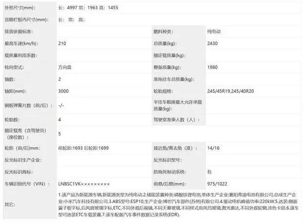 信息显示,两款纯电动轿车产品商标为小米牌,企业名称为北京汽车集团越野车有限公司,注册地址为北京市顺义区赵全营镇兆丰产业基地同心路1号,生产地址为北京经济技术开发区环景路21号院。