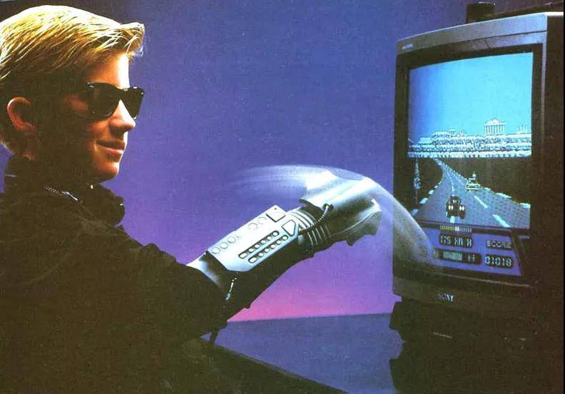 1990年,任天堂又推出了极具赛博朋克风格的威力手套(Power Glove),居然可以用来识别握拳、手指弯曲、手臂上抬下抬等14种动作的设备,最终由于用户体验太差而遭遇了失败。但它也因此成为了让我们正式进入体感游戏时代的Wii Remote的前身。