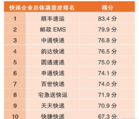 顺丰的服务最好,快捷快递的服务最差,你同意吗?