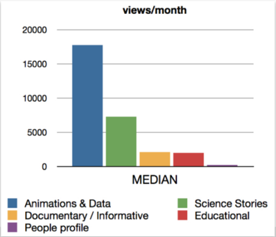 根据Maarten Roos博士发表的名为Science on YouTube: what an audience likes文章,在针对NASA的YouTube官方频道进行详细调研之后,他将科技类视频大胆地分为5种类型,即动画数据、科学故事、纪录片、教育和人物传记。