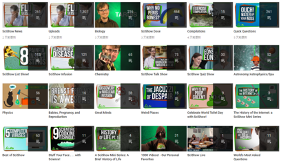 不同于MinutePhysics手绘图纸的风格,SciShow更多地是以真人秀的模式出镜。其YouTube频道已有超过470万的订阅,子频道SciShow Space订阅人数即将达到百万。目前YouTube视频总播放次数即将突破8亿大关。