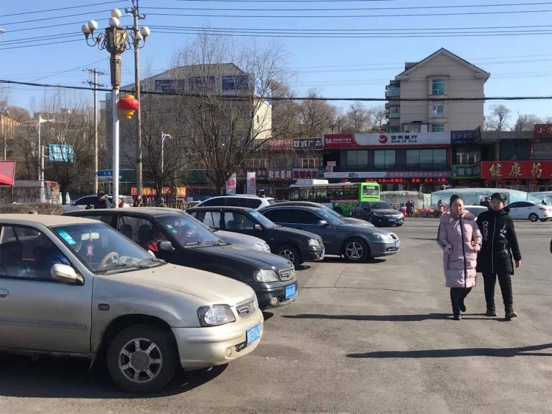 矿务局广场上停着一排拉私活的“黑车” 摄影:王博