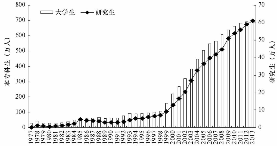 中国大陆历年大学生和研究生数量 / 《高校扩招对婚姻市场的影响》