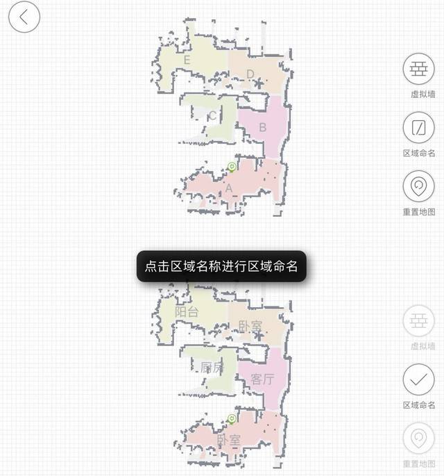 顾名思义,定点清扫就是在扫地机对室内环境进行绘图后,你可以直接在 app 上面选择固定点进行清洁。分区清洁则是扫地机会自动给你的屋子分区,你可以对不同区域进行命名,然后就可以指定扫地机器人固定清扫特定的屋子。