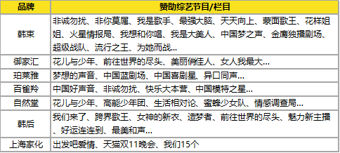 图表12:近年来国产化妆品牌赞助的综艺节目/栏目举例