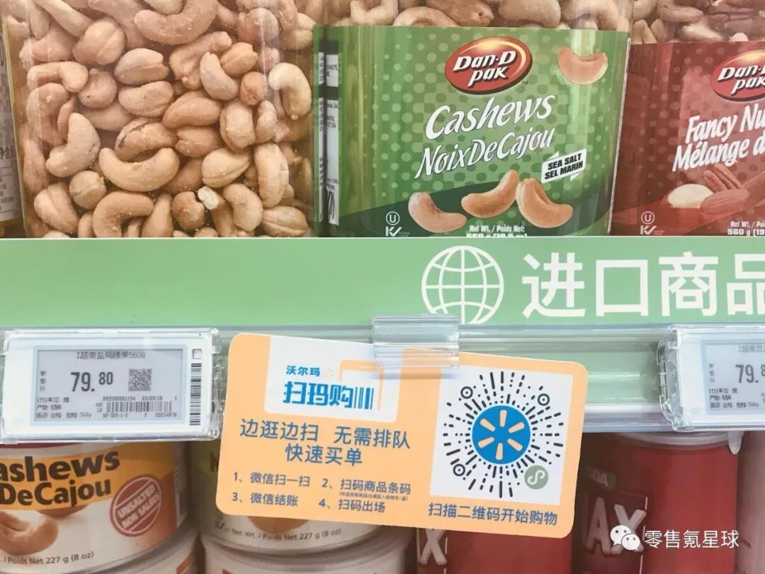 其次,沃尔玛惠选超市推出包括自助收银机、快速收银“扫玛购”和传统人工的3种收银方式。其中,与微信合作的“扫码购”小程序可以让消费者在卖场内无需下载任何应用软件,就可以对商品进行扫码并完成付款。