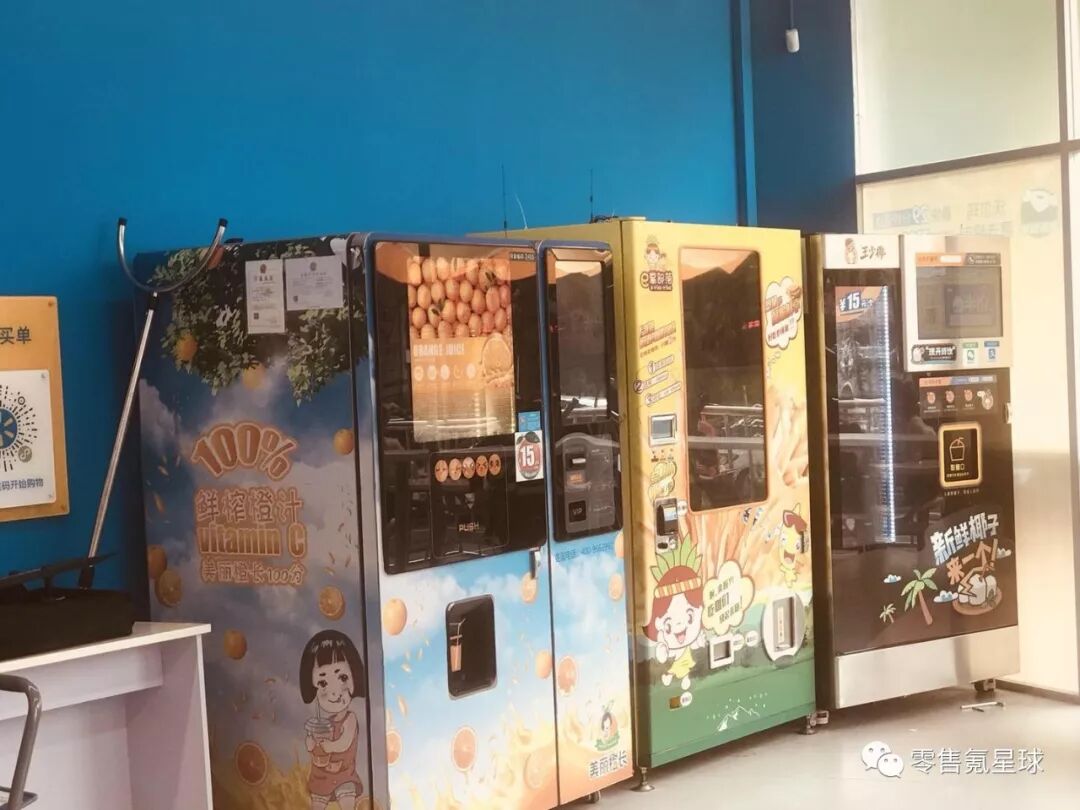 第五,门店入口,设置一些无人自助售卖机。