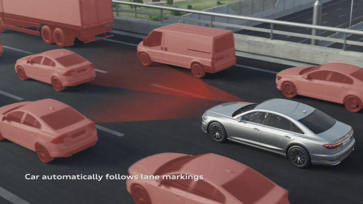去年奥迪 A8 正式在巴塞罗那亮相,也成为了首款搭载 L3 级别自动驾驶技术的车型。奥迪搭载的L3 级自动驾驶技术,叫做 Traffic jam pilot,简单说就是在车速低于 60km/h 的时候启动堵车辅助跟车系统,算是低速自动驾驶的一种。