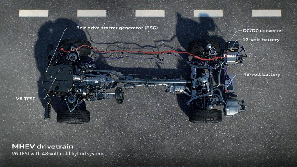 全新一代 A8L 全系都会标配 48V 的轻混动系统。主要有两个重要功能:支撑车内各种科技配置的用电以及对动力进行辅助。