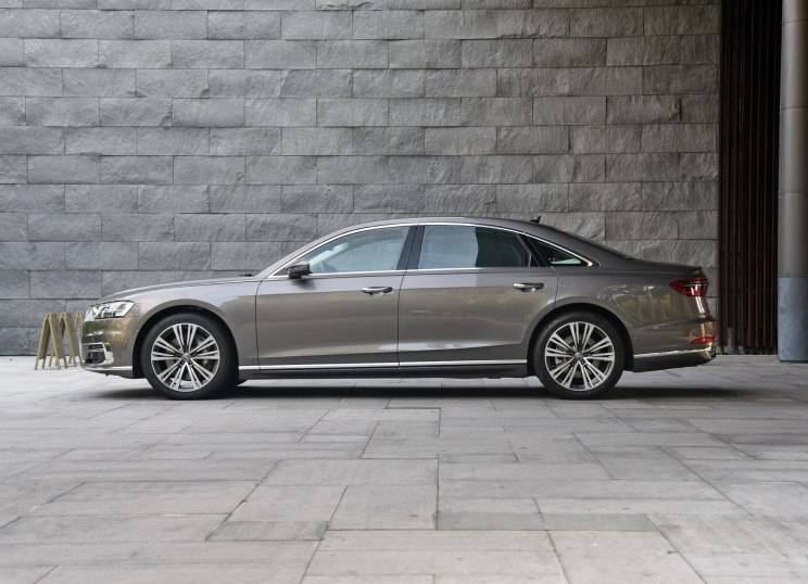在 A8L 上,车辆外部的线条让整个车身显得更加流畅,飘逸的同时,大量的硬线条让车身视觉观感更宽,更硬朗。在这一代 A8L 上奥迪在车身上加入了大量的镀铬件来强调几何形状。当然,好看或者是不好看其实见仁见智。