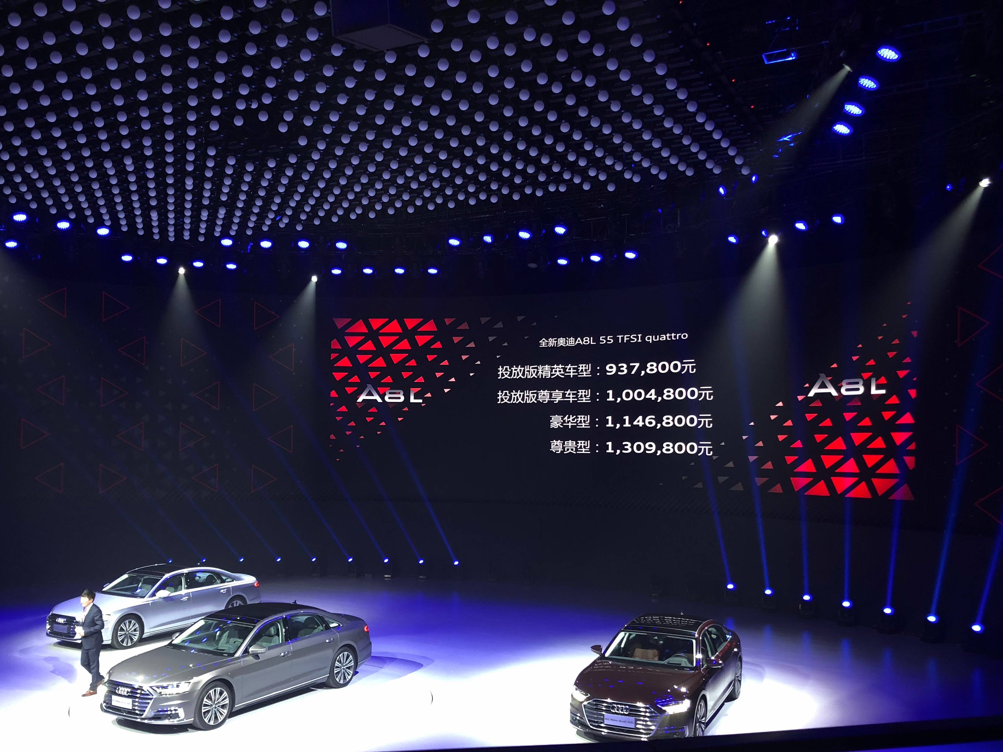 今晚(4 月 8 日),全新一代的奥迪 A8 L 正式在国内上市,版本和价格可参考下图。