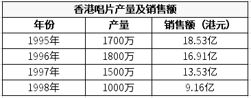 全球都有的盗版猖獗、唱片衰落的现象,在香港尤为严重。1997年之后,唱片销售额开始走低,到了1998年,销售额已经不足95年的一半。