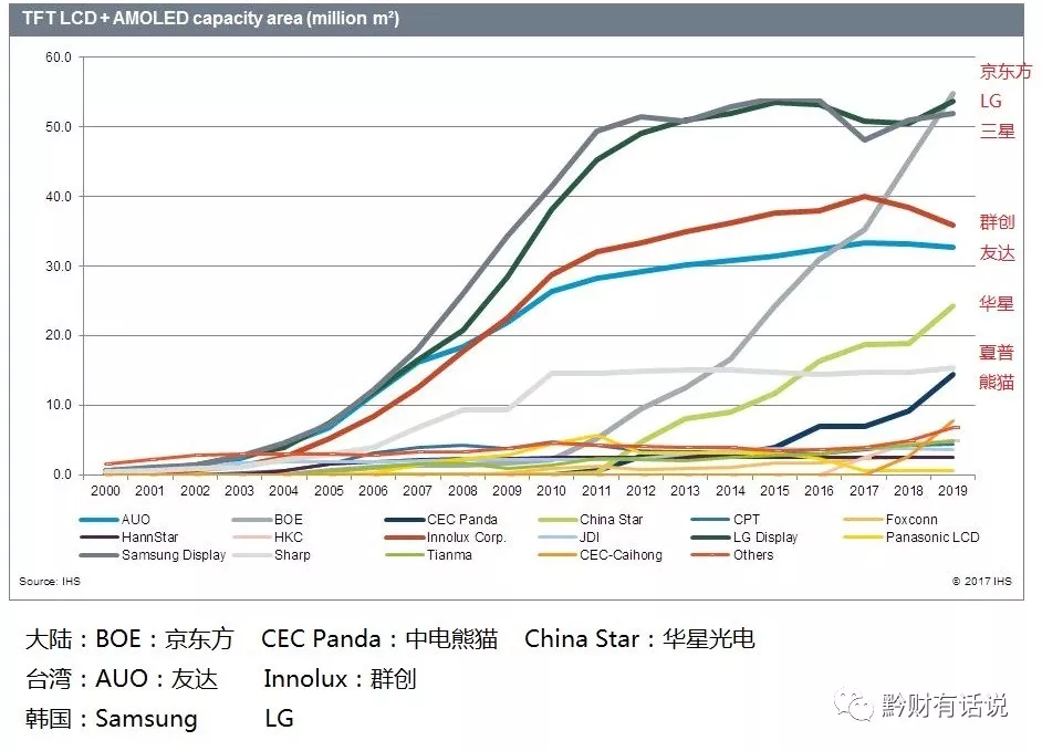 而京东方也因为一座座类似的大厂(重庆、合肥、成都、绵阳等),自己出技术、地方政府出钱,在LCD产能上,从2014年的全球第五,攀升到2017年底的全球第一。