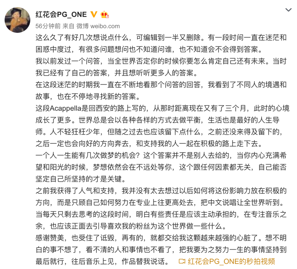 最后,非常巧合的是,两个曾经处在舆论风口浪尖并沉寂已久的人,都选择在今天发布了长微博: