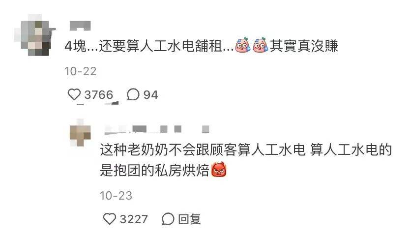评论区的网友破防了:“算上水电人工铺租,其实没赚钱。”