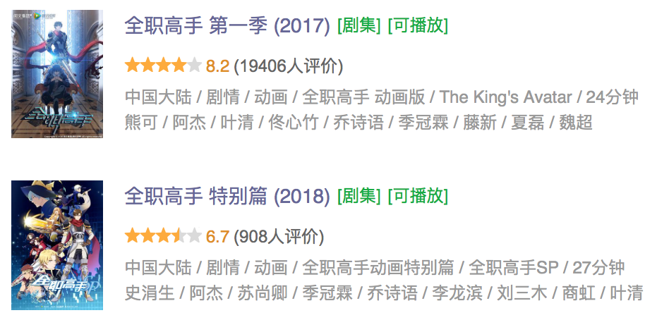 4月27日,“全职粉”们万众期待的《全职高手》特别篇正式上线,不过让人万万没有想到的是,这部动画作品却意外地收到了铺天盖地的差评。截止5月4日12:00前,《全职高手》特别篇的B站评分为7.7分,豆瓣评分则是6.7分,这与一年前《全职高手》第一季动画在B站、豆瓣分别获得9.1、8.2分的成绩相差甚远。