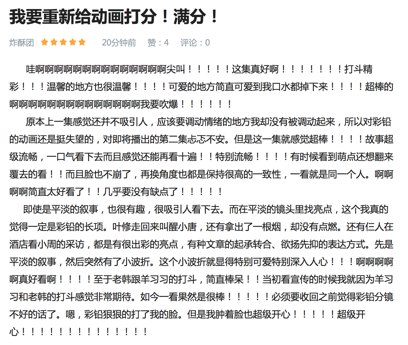 更为有趣的是,在5月4日播出的《全职高手》特别篇第2集中,叶修的“人设”又被彩色铅笔往美型方向进行了修正,粉丝们给的“满分”评价又重出江湖,该动画的总体评分又开始出现上升的趋势。