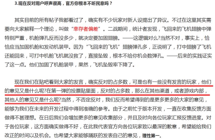 在中国文娱产业最为发达的游戏行业,存在一种叫“机翼论”的内容运营理论。它的大体意思就是:我们时常都会听到一些来自玩家的非预期呼声,但这些不满的声音其实并不准确,因为它无法代表更多沉默的大多数人。“机翼论”和“韭菜论”、“保姆论”并称为中国特色手游运营理论体系,虽然它们都很不受粉丝的待见,但却也能够反映很多成熟的商业公司在面对消费者诉求时会采取的态度。