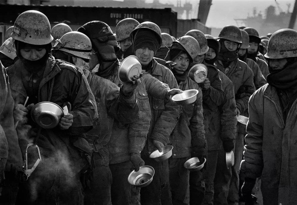 1990年,辽宁本钢,带着午餐的炼钢厂人。