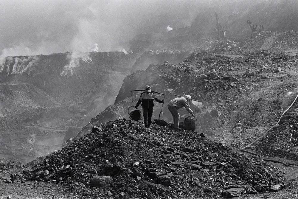 1995年,辽宁阜新新邱露天矿,矸子山上的捡煤女工。