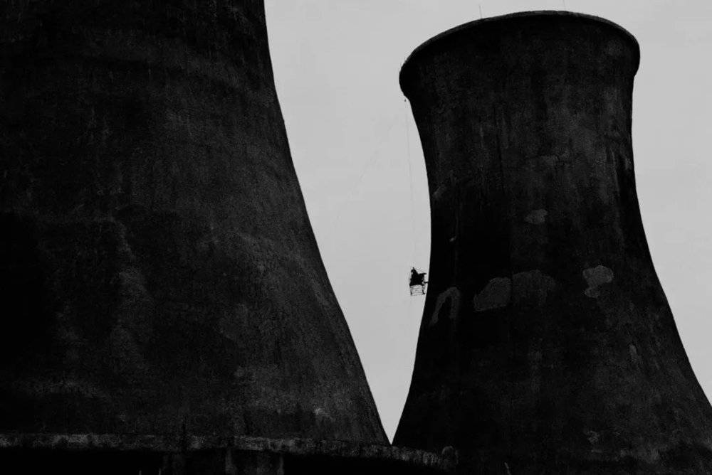 1978年,辽宁阜新发电厂,维修冷却塔。