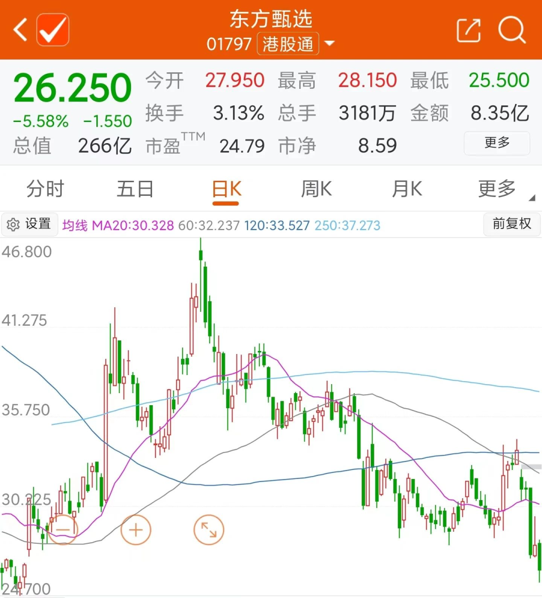 看这两家的股价走势就知道,资本市场明显看好新东方,看淡东方甄选。