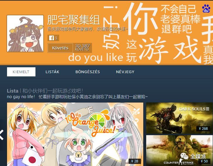 steam平台也有专门为肥宅推荐游戏的社区,便于肥宅们随时发现新上榜的人气游戏。