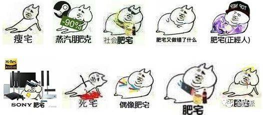 流传甚广的肥宅表情包,也更多地融入了当下流行文化的特征。“蒸汽肥克”“社会肥宅”......肥宅表情包不再是肥宅们的专利,成为了众多“社会人”表达情绪的方式。