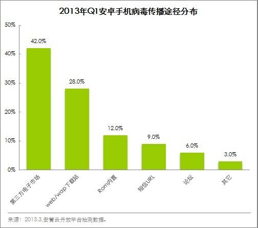 根据CNNIC数据,截止2012年底,中国移动网民规模已达4.2亿,占整体网民75%,移动互联网时代的蓬勃发展也使得移动安全问题引起人们关注。近日,安管云开放平台与艾瑞咨询联合发布《2013Q1移动安全数据报告》,报告主要发布了2013年Q1安卓手机病毒、安卓应用风险广告以及安全趋势预测等内容,呼吁用户提高移动安全认知。