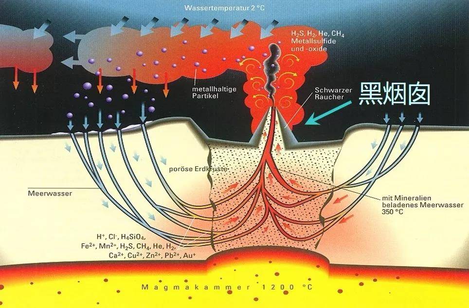 现在我们已知的大洋板块最古老的年龄不会超过2亿年,而新生的大洋不断地在大洋裂谷中产生出来。无论是大洋裂谷还是深海海部,都有大量的热液现象出现,也就是说这些热液现象形成了黑烟囱。