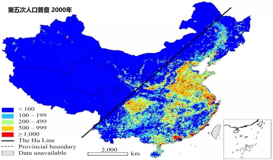这张图是2013年我在英国作访问学者的时候做的,是用国家2000年第五次人口普查的数据做的。