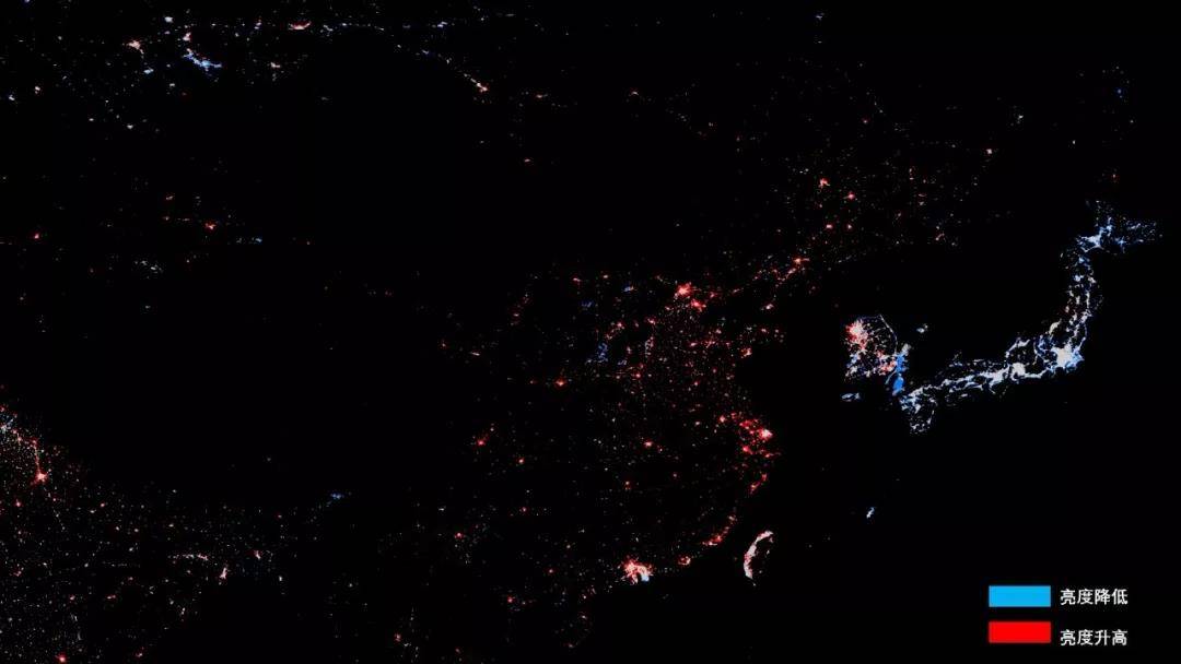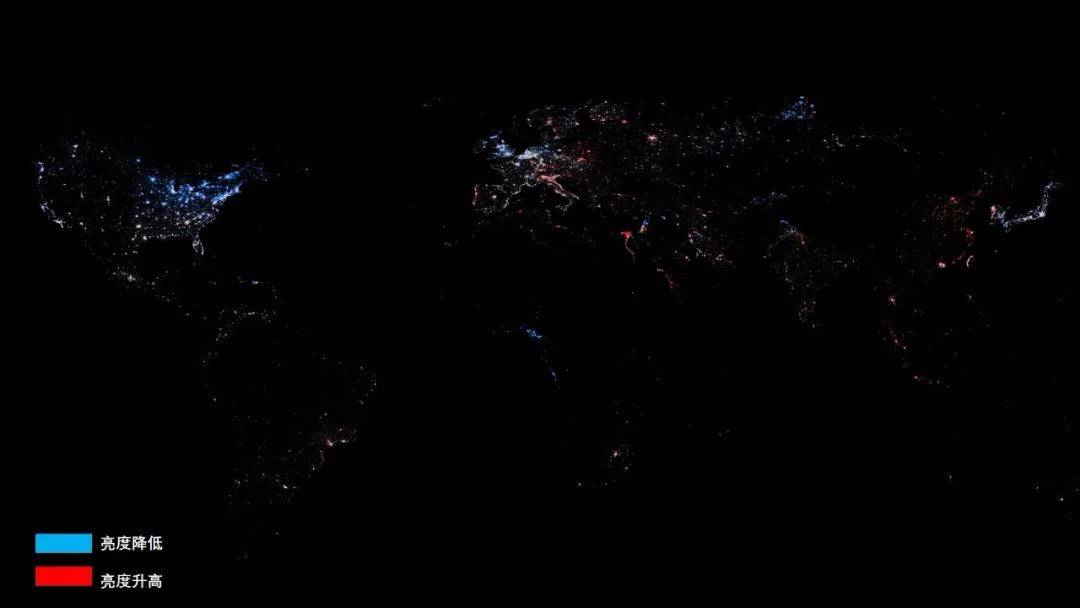 我们发现中国并不是最严重的,同样的,西欧、北美和韩国日本等一些国家的灯光亮度也发生了显著下降。