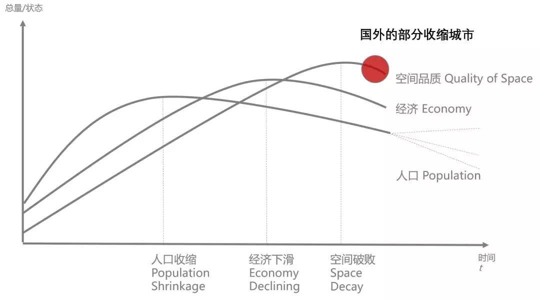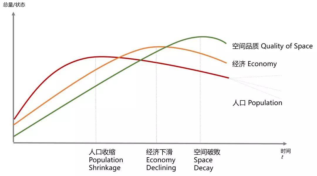 一个收缩城市如果它的公共空间的品质都开始发生衰败,老百姓的心里可能也会感觉到颓废,我们说这可能是收缩城市的比较靠后的发展阶段。