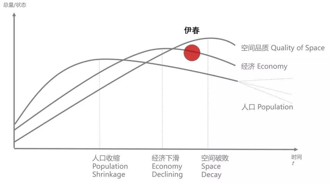 所以说我们从研究上提出一个假设:是不是可以把收缩城市分成不同的阶段。因为从城市生命周期的理论来讲,城市是从无到有,慢慢地繁荣,到达顶峰,开始衰落,然后重生或者彻底没落。其实衰落也是必然的,或者说一部分城市是必然的。