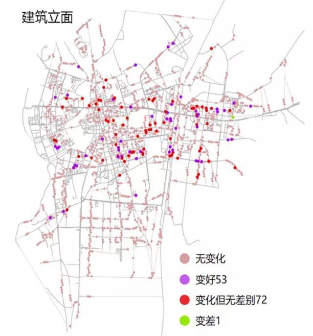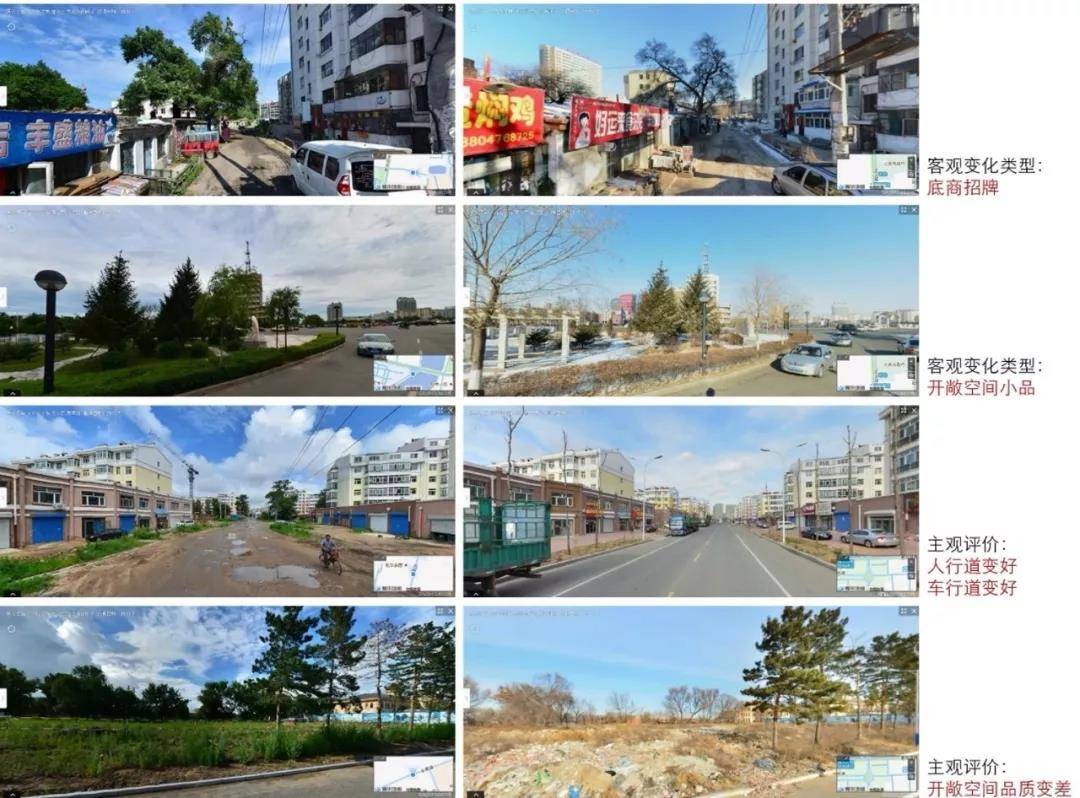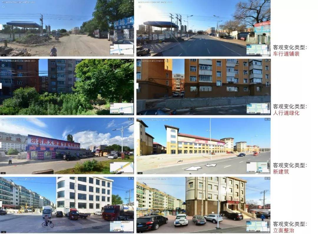 我们来看每一个街道上面到底发生什么样的变化:多了一个路灯杆呢,还是真的多了一个垃圾桶?我们再看这种变化是不是发生了改善,是往好了变,还是往差了变?