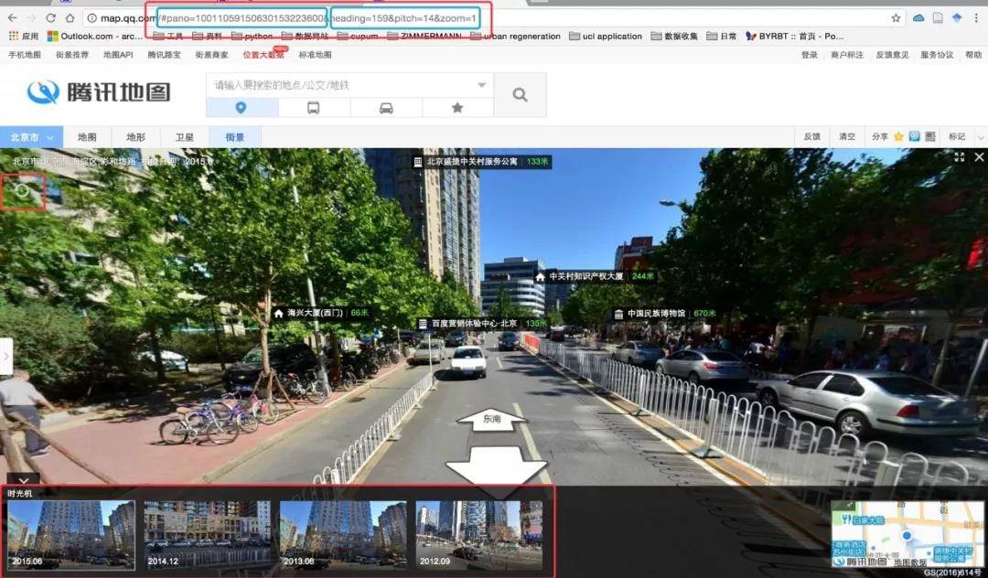 我们做的工作很简单,首先一一地把齐齐哈尔的主要街道每隔几十米,从腾讯地图上采集每个点四个方向的2013和2015年的街景照片。