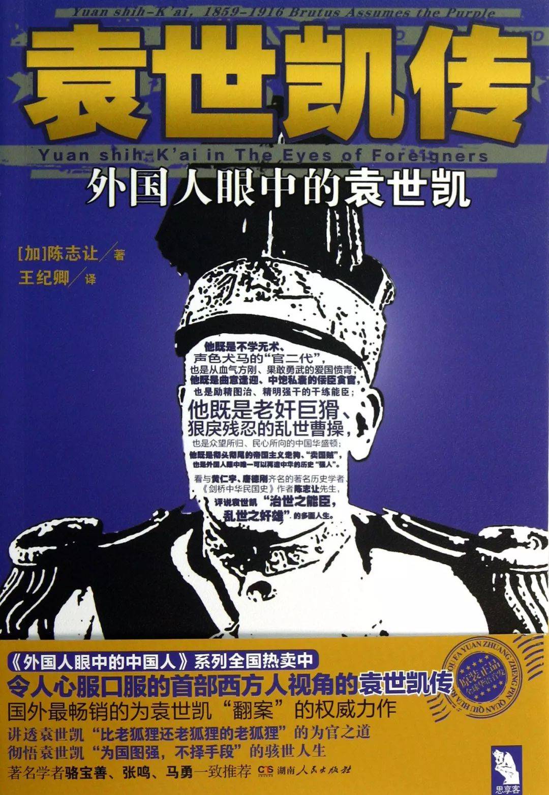 这本袁世凯的传记来自一位我很喜欢的历史学家,叫陈志让(Jerome Chen)。《袁世凯传》是他写的很好读、很漂亮的一本书,可惜中文版被他们做得这么难看,做成了一本很粗俗的地摊书,还加了一个很莫名其妙的话,叫《外国人眼中的袁世凯》。但它翻译得很好,是王纪卿先生翻译的。