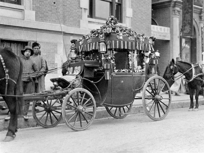 20 世纪初,天津街头的一辆装饰风格非常西化的婚车,摄影:西德尼·戴维·甘博