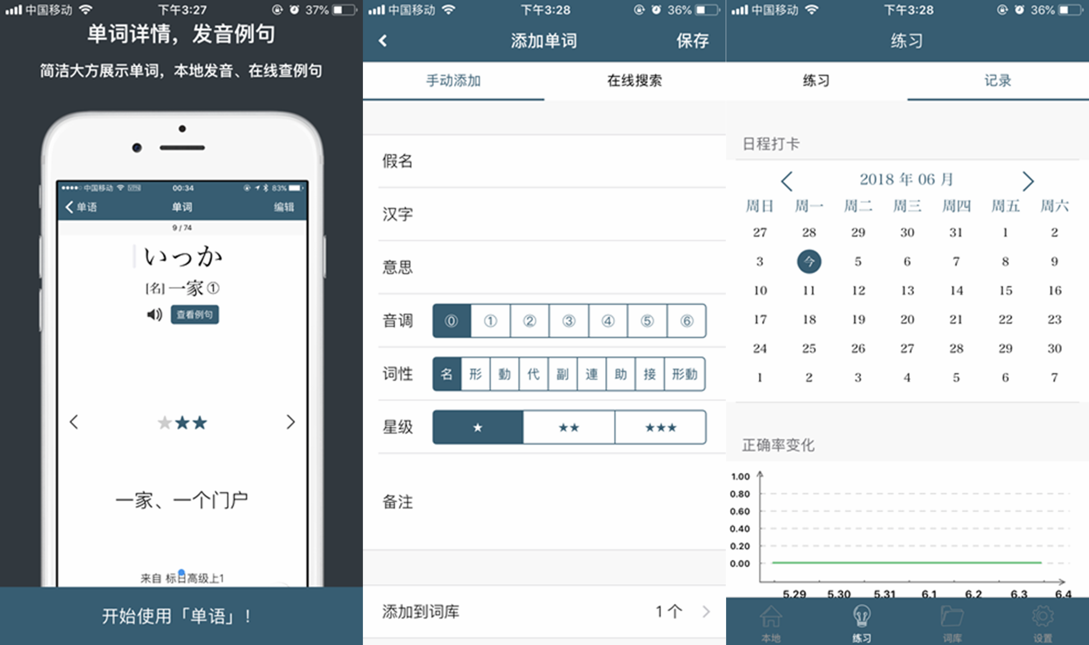 据他介绍,“单语”一款用于记录和学习日语的工具类应用,这也是他除了课程作业以外,第一款独立开发的 App。当他去年开始学日语时,发现市面上没有一款好用的日语单词本,正好自己也在学习 iOS 开发,就萌生了自己开发的念头。2016 年三月就开始研发并上线,一直到现在还在更新维护。