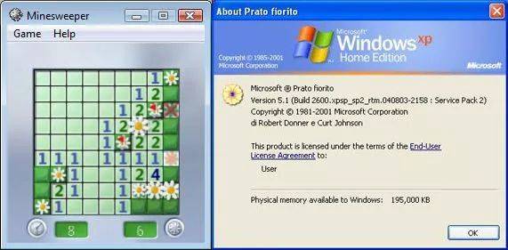 这一阶段,微软正忙着解决操作系统内核迭代的问题,商用Windows 2000和家用Windows ME已经令微软的程序员头大了,整个公司都忙着开发Windows XP,自然没有顾得上一款小游戏。2001年Windows XP正式发布,《扫雷》依然采用了Windows 2000时的解决方案,意大利版直接用《花田》替代。