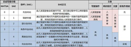 早在2014年,SAE International(国际汽车工程师协会)就制订了一套自动驾驶汽车分级标准,其对自动化的描述分为5个等级。按照这个分级的标准,除了L5可以完全脱离司机的配合,其他几个级别都需要司机进行一定的操作,而L0-4级的自动驾驶,称之为自动辅助驾驶(程度不同)更为合适。