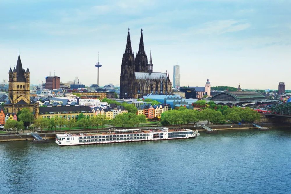 黄阿姨坐着游轮在莱茵河上看到了德国科隆的风光