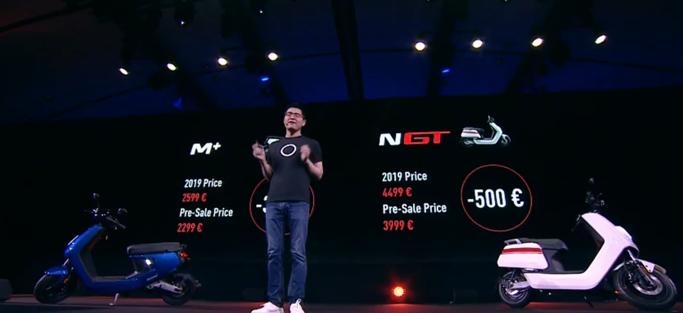 这款产品由小牛联合创始人兼副总裁胡依林发布。按照惯例他骑着这台最高时速70km/h、充电3.5小时续航100公里(45km/h时速下)的N-GT来到了舞台中央。
