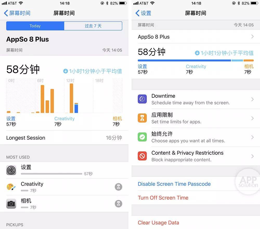 苹果则在 iOS 12 推出了将通知分组的「隐式推送」、管理手机和应用使用时长的 「屏幕时间」,还可以通过「应用限制」功能对部分 App 设置使用时长的限制。