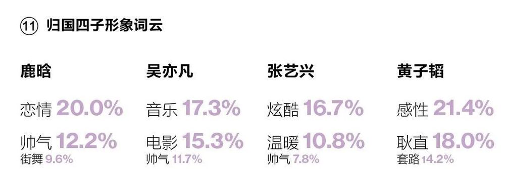 徐帆进一步说,这群新人从着装到举止几乎和韩式偶像一样,还是传统的花样美男,并没看出特色。不过陈羲亦提醒,明星在树立形象时需要把握好度,既要与众不同,又要让标签的受众面足够广,不能过于小众(图11)。
