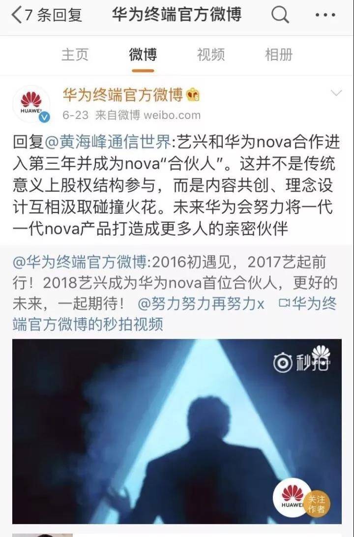 6月18日,华为单方面宣布张艺兴为华为nova首位合伙人。第一时间粉丝自然是奔走相告、欢欣鼓舞。这是自己爱豆代言人身份升级,甚至有粉丝将“合伙人”解读为股东、高管、参与分成,当然也少不了在社交网络上给金主爸爸贡献可观流量。